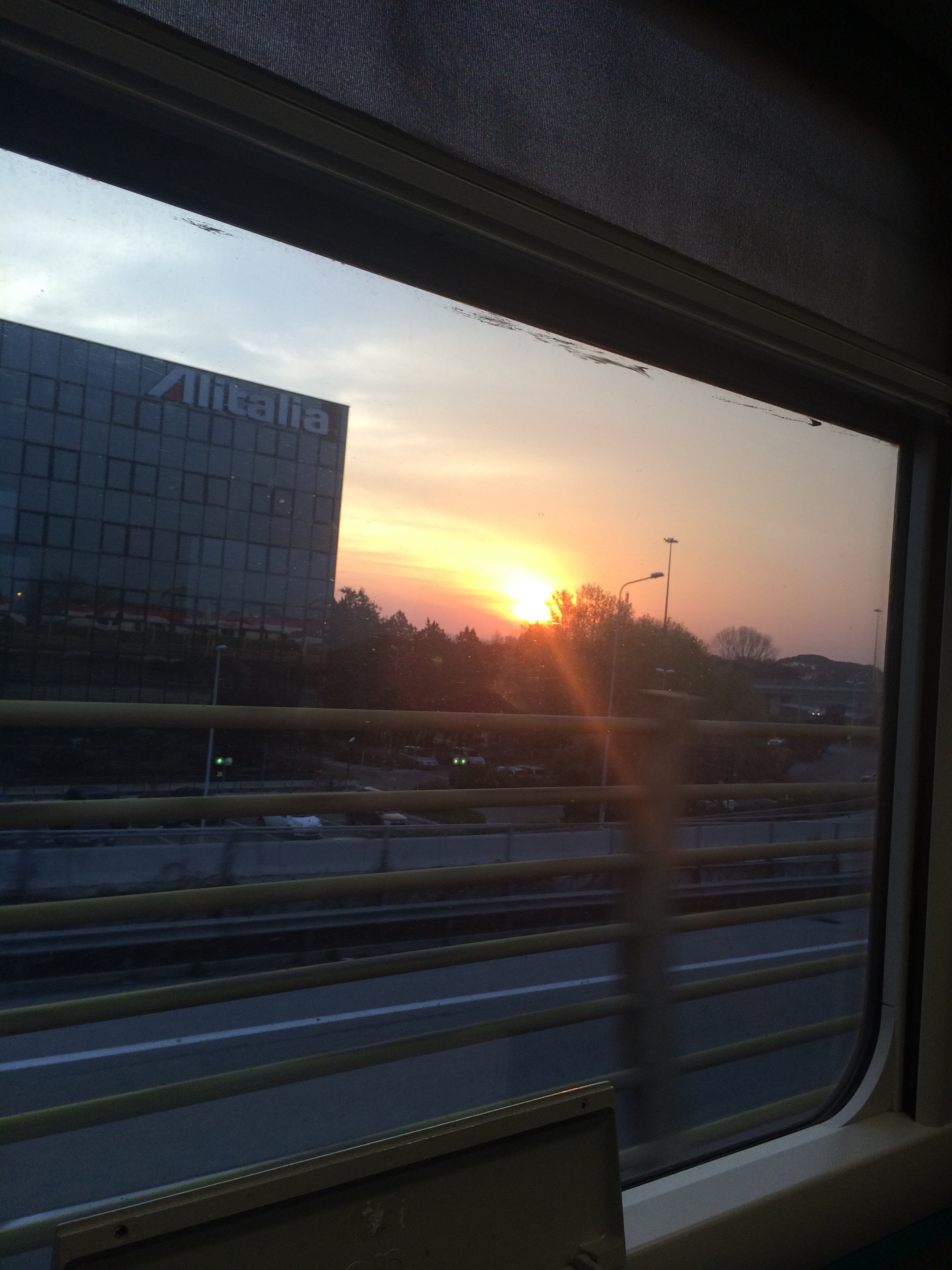 As the train pulled out of the station in Rome and headed to Florence, the sun rose just at the perfect moment.