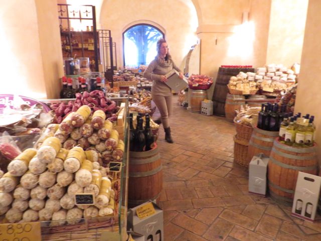 Greve is a small medieval town that has a wonderful piazza which is the focal point of the town. There is a Saturday market every week and we caught the tail end of it, just in time to buy some of the sweetest peas-in-the-pod I’ve ever tasted. Then we went to the famous Antica Macelleria Falorni, a Tuscan butcher shop that has been there since 1729. Wow. Wow. And wow. Best prosciutto and salami I’ve ever had in my entire life. We ordered a tasting plate of a bunch of things and let our taste buds explode.