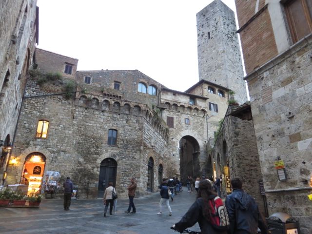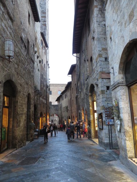 After touring Siena, we looped our way back north but took a western detour in order to see the beautiful Tuscan village of San Gimignano, famous for its medieval architecture and its many tall towers. It was already twilight when we arrived, and drizzling, but that didn’t stop us from walking from one end to the other of this sweet, walled village. The wet pavement and the night lights only made the city sparkle that much more. The shops are much more artisan-like here, with owners who have actually made the wares inside. The food shops are naturally beautiful and abundant, with baskets of produce or what have you. There is a delicious bakery here, Pasticceria Armando e Marcella, which of course we indulged in. Unfortunately, the churches were closed for the evening, so I will just have to return. As if I need an excuse.