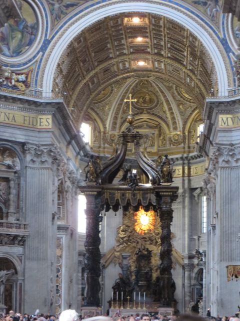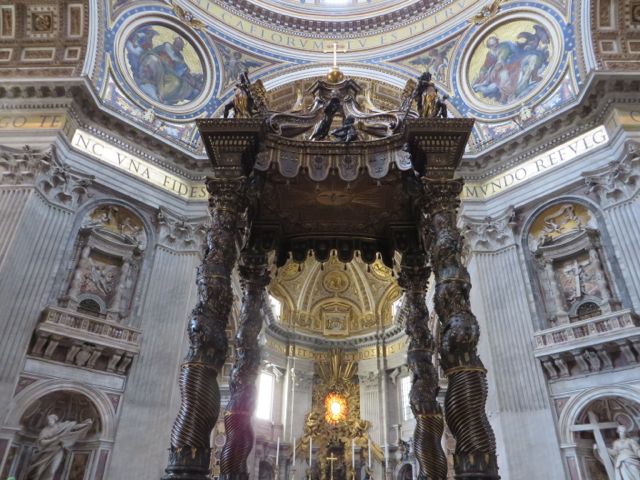 The next day was all about the Vatican. We had hired a guide to take us through which, in hindsight, was the smartest thing ever, because you skip all the lines!! And of course, you get educated!!! So our guide, we called him Daniel the entire day until we were saying our goodbyes and he gave us his card which read “Eugenio”, met us at the hotel and we all grabbed a taxi together and drove to the country of the Vatican. Did you know the Vatican is its own country? I didn’t! Pretty cool, ay? So the Vatican was a pretty busy place that day because 2 popes, John XXIII and John Paul II, were canonized two days prior and 800,000 Catholic pilgrims came to witness it in St. Peter’s square, while another 500,000 watched it on giant screens set up all around the streets of Rome. We were lucky to be there at this important time! John Paul II was the reigning pope for much of my life (1978-2005) and our timed visit to St. Peter’s allowed us to be among the first to view their final resting places that are now made public in St. Peter’s Cathedral.