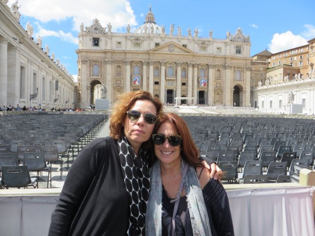 Kim and me in front of the chairs that sat the VIP at the canonization of the 2 popes at St. Peter’s Cathedral.