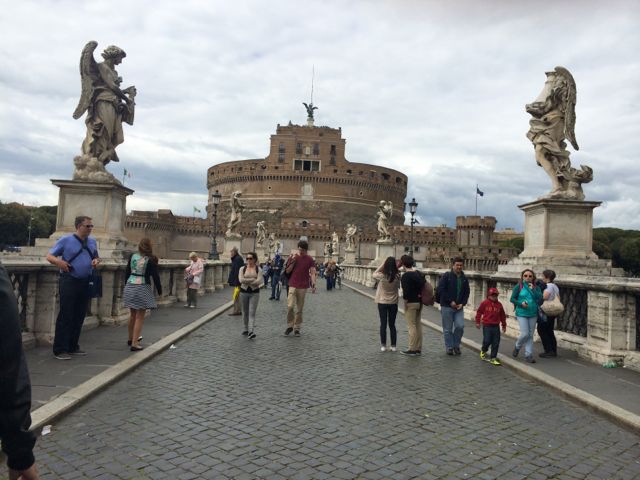 On our walk back from the Vatican, we stopped at Castel Sant’Angelo, Castle of the Holy Angel, and the Bridge of Angels.