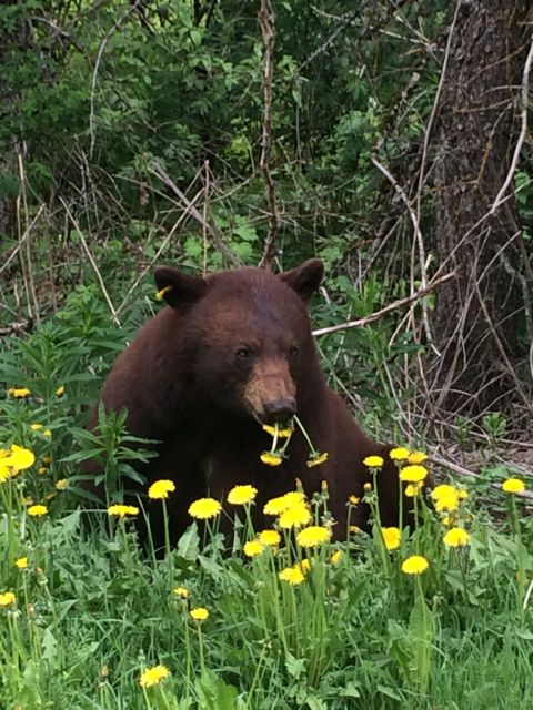 This furry little guy was just on the side of the road, happily eating the dandelions. We pulled up alongside him, rolled down the car window, and he didn’t even flinch. Canadian safari!