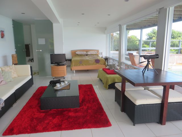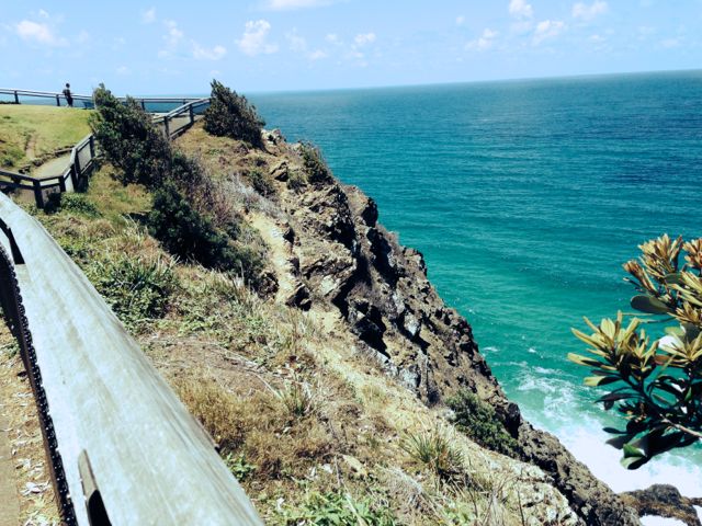 Before I arrived, I enrolled in the Open Water Diving Course at the Byron Bay Dive Centre, and I booked a room in a private B&B called Byron Bathers after finding it through stayz.com, another site similar to airbnb.com, but it includes hotels, motels, and more commercial properties as well. I couldn’t have done better on location, because after booking it, I asked the owner if they knew of the Dive Centre and its location, and they laughed as they said it’s 2 doors down. I had to be at my classes at 7am every morning – fantastic!! I also quickly realized, upon my arrival, that everything I wanted and needed was within 300 meters. The beach, the town, and my classes. And to top it all off, the house and it’s owners couldn’t be more lovely! I know you hear me say that a lot, but I truly mean it! Paul and Sam (Sandra, but somehow she is called Sam) built this 2-level house about 15 years ago with their entire residence upstairs and 2 full in-suite rooms with a shared kitchen on the lower level. Each room has its own private outdoor patio as well as a large, beautifully furnished common outdoor area with plush comfy seating and an in-ground pool. Even though the house is in town, it is on a quiet little lane so it doesn’t get any foot traffic or town noise. The room itself is the perfect mix of modern beachy, with white-painted horizontal paneling on all the walls, high ceilings, natural maple floors, a really comfortable bed and sitting area – Sam and Paul have thought of everything to make you extremely comfortable, from fabulous towels in your own luxury modern bathroom down to homemade muffins and fresh fruit waiting for you in the kitchen every morning. Paul took me for a ride one afternoon up to the lighthouse which is part of the Byron Bay Preserve area and pointed me to a path which winds around down to the beach. Heaven!!