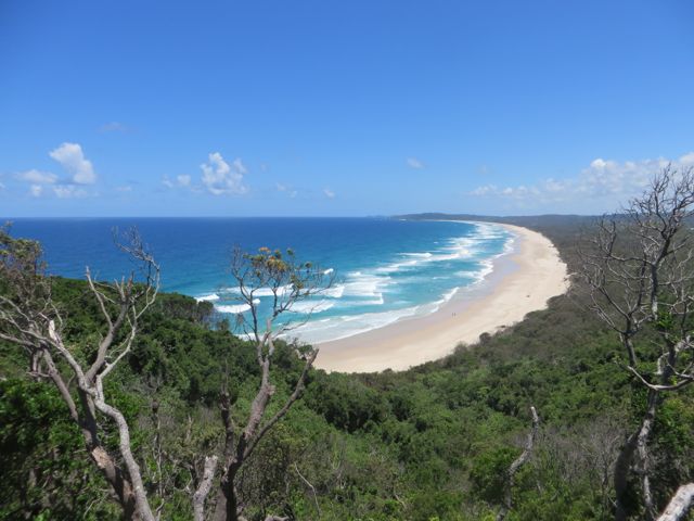Byron Bay is a jewel. It used to be a sleepy, little beach town with a hippy country feel. The land has a great “roll” to it – it’s not flat like many beach areas tend to be. And there are no high-rise hotels at the beach or anywhere in Byron Bay for that matter – thank god someone had enough sense when they set the zoning laws here, because they really have kept the beauty of the land and the natural coastline in tact. It’s got a lot of young people and I kept thinking how much my kids would fall in love with this place – so many people to meet and hang with, so much to do, from surfing, snorkeling, diving, beaching it, to skateboarding, music in different places in town – it’s just a great walking town to explore. But there are also people my age here, many from different Australian cities who are visiting, and then many locals who love this place and have adopted a lifestyle that allows them to stay. They may not make much money, but they can surf or dive everyday or be outside and that’s good enough! Everyone is tattooed here, I think it’s a requirement if you want permanent residence. And everyone smiles and is happy. The bay beach is the beach that everyone goes to – it has great waves and is the most enormous beach I think I’ve ever seen! It never ends! And it has that great hard-packed sand that you can walk or run on and never sink. My mother would love it. I have to say, I definitely get my love of the beach from my mom. Thanks mom, for all those drives down to the Jersey shore when I was a kid. And then to Fire Island, and then the Hampton’s. If I end up here, you can only blame yourself. 🙂 The ocean beach is just on the other side of the arm that divides the two, and it is just as breathtaking.