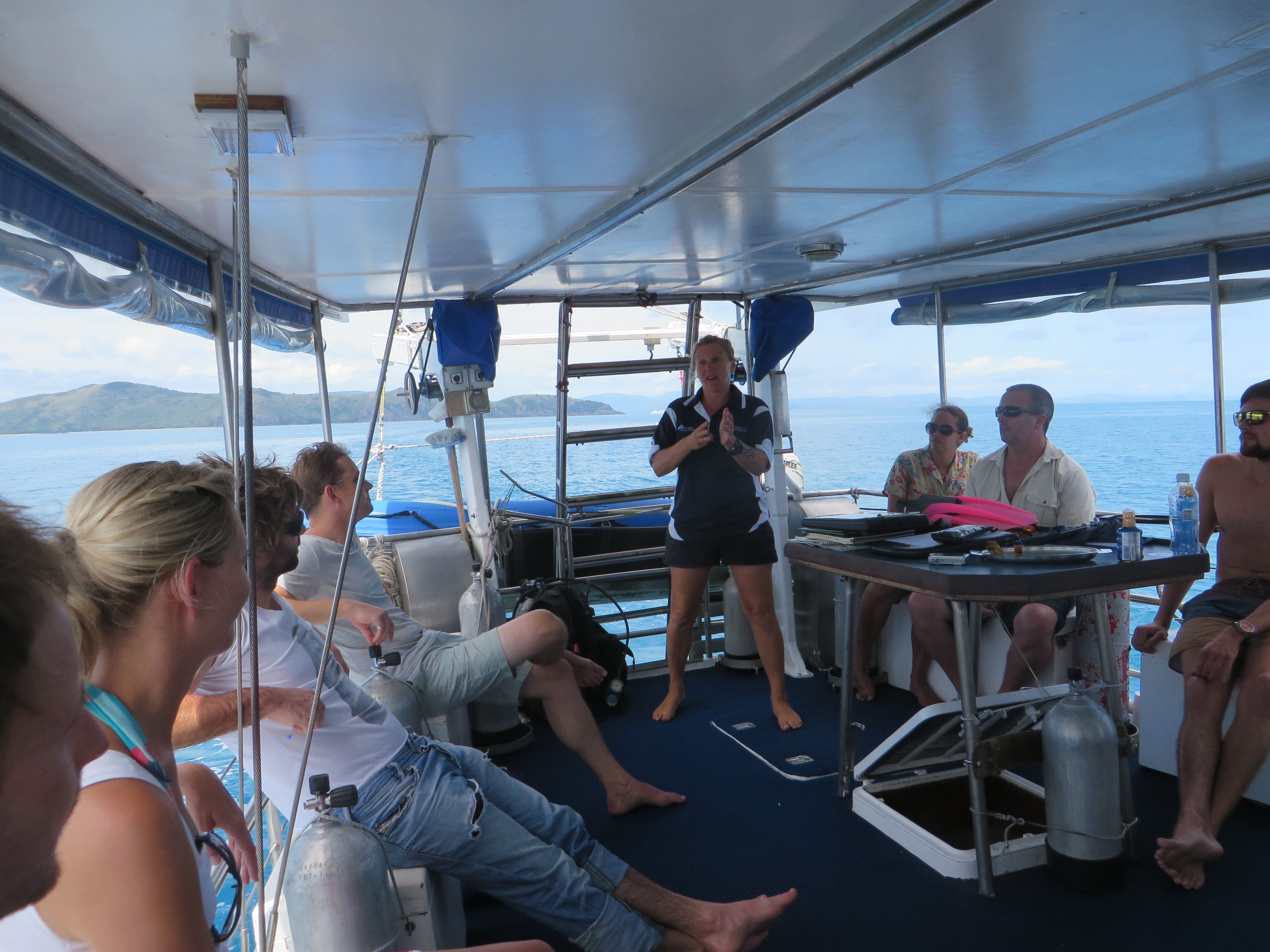 I told Gaye I would try again the next day. Up again at 6am, feeling better than the prior day, I walked myself over to the centre as I ate my banana. I actually thought I wasn’t going to go, having made that decision when I woke up. But Gaye gave me a pep talk and I found myself getting my equipment ready to put on the boat. Oh, can we talk for a second about putting on a wetsuit? Oh my fucking god. If I ever thought Spanx was hard to pull on with all the jumping I have to do, it’s a breeze compared to this. Seriously. And then once you get it on, you can’t get it off! Diving MUST be worth the effort, right?? Well, I did it. I stayed down for 20 minutes. And then I freaked again. And then I puked again. But that dive counts. This time, I got tired from trying to swim and found myself breathing heavy and then panicked because I felt like I wasn’t getting enough air. NO, I didn’t go on the second dive of the day and therefore didn’t get my scuba certification either. I am leaving in the morning to fly up to Airlie Beach/Shute Harbor where I have plans to sail on a boat around the WhitSunday Islands for 3 days. I will try to complete this course. But if I can’t, or rather…don’t, I’ll be ok with it. I’m trying it, and I might find it’s not for me. Or, I might fall in love with it!