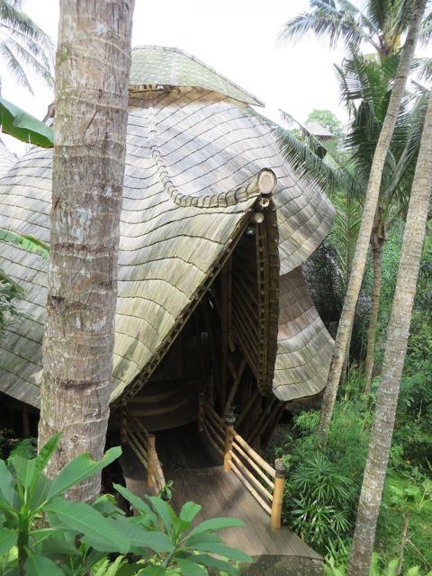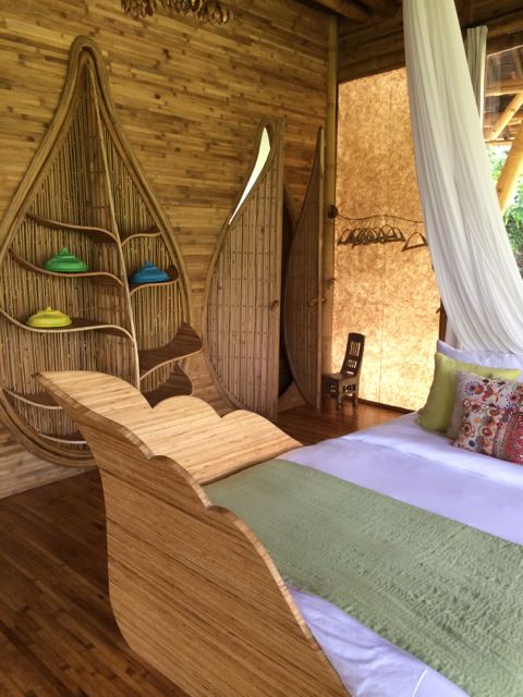 Trolling the internet one night, searching for architecturally interesting homes and hotels in Bali, I came across the wildest pictures of bamboo homes I had ever seen. They sort of resembled the futuristic homes of the Jetsons, with their oddly balanced multi-levels of living space and crazy-shaped roofs that looked like they might just ascend up into the sky. But these homes were made entirely of bamboo; forested, harvested, cured and treated right here in Bali. Not only were the structures made of bamboo, the furniture and everything in them was also made of bamboo. My eyes scanned for words while my brain begged for information. I desperately needed to read and absorb, to understand what I was looking at.