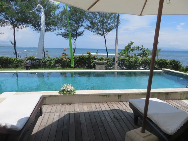 I had found my next destination on airbnb, and was moving on, gratefully. Villa Puri Purnama is a lovely beachside villa on the Gianyar coast, north of Sanur. I knew I might be isolating myself staying here, and the owner, Paula, was honest with me about that. But she offered me a great deal for a night to see if I liked it. $59 for a Master Suite including breakfast. The property has a gorgeous pool and grounds and literally sits on the black volcanic sand beach It really is beautiful. It is well maintained and the staff are all Balinese and lovely, smiling, hard-working and gentle people. Needless to say, one night turned into 6. Lunch and Dinner was ordered off a menu each day and I was charged less than $5/lunch and $6/dinner. I don’t think I ever finished the food on my plate – huge portions. I also had a mani/pedi and one-hour full body massage at the villa – total price $27. I said $27. I know I’m stuck on calling out the prices here but just making a point that spending the money I have in the past on these very necessary treatments feels so wasteful now. I know, it’s all relative. Just makes me think.