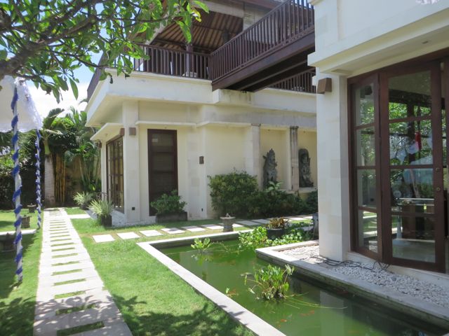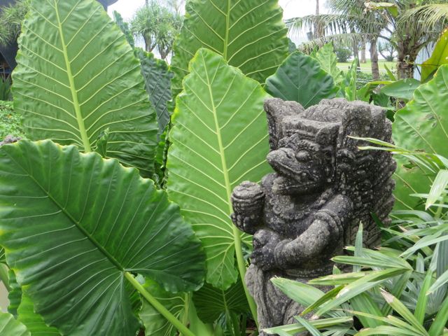 Bali is 70 miles long and 95 miles wide, and is 8 degrees south of the equator. It has 2 seasons – Rainy and Summer. It is ALWAYS hot and humid, with temps mostly in the mid-80’s, but there is usually a nice breeze coming off the water if you are waterside. Over 4 million people live here in Bali, and over 80% are Hindu, with the rest being a combo of Muslim or Christian. It is a huge tourist magnet, especially for Australians, and it is CHEAP. That’s why so many expats settle here – they can live the life they dream of. It is also filled with motor scooters, which is the preferred way of travel for most of the people here, as cars are expensive. My jaw hit the ground when I spotted families of 3 or 4 casually siting sideways on a speeding death bike…I mean motor scooter, weaving through traffic. The scooters and cars are constantly beeping at each other, either to say..”hey, I’m behind you but about to pass you.” or “hey, you beeped at me I’m beeping back”. I don’t know what effectiveness the beeping has, I just know it’s constant. I also noticed, as I drove along the streets, that the landscape is filled with…construction materials. Stone, rubble, wood piles, rubble, and some rubble. Actually, it is rare to see a so-called “landscape” during my travels from Nusa Dua to Gianyan and then Sanur. There is also a tropical lushness everywhere that happens to be really beautiful.