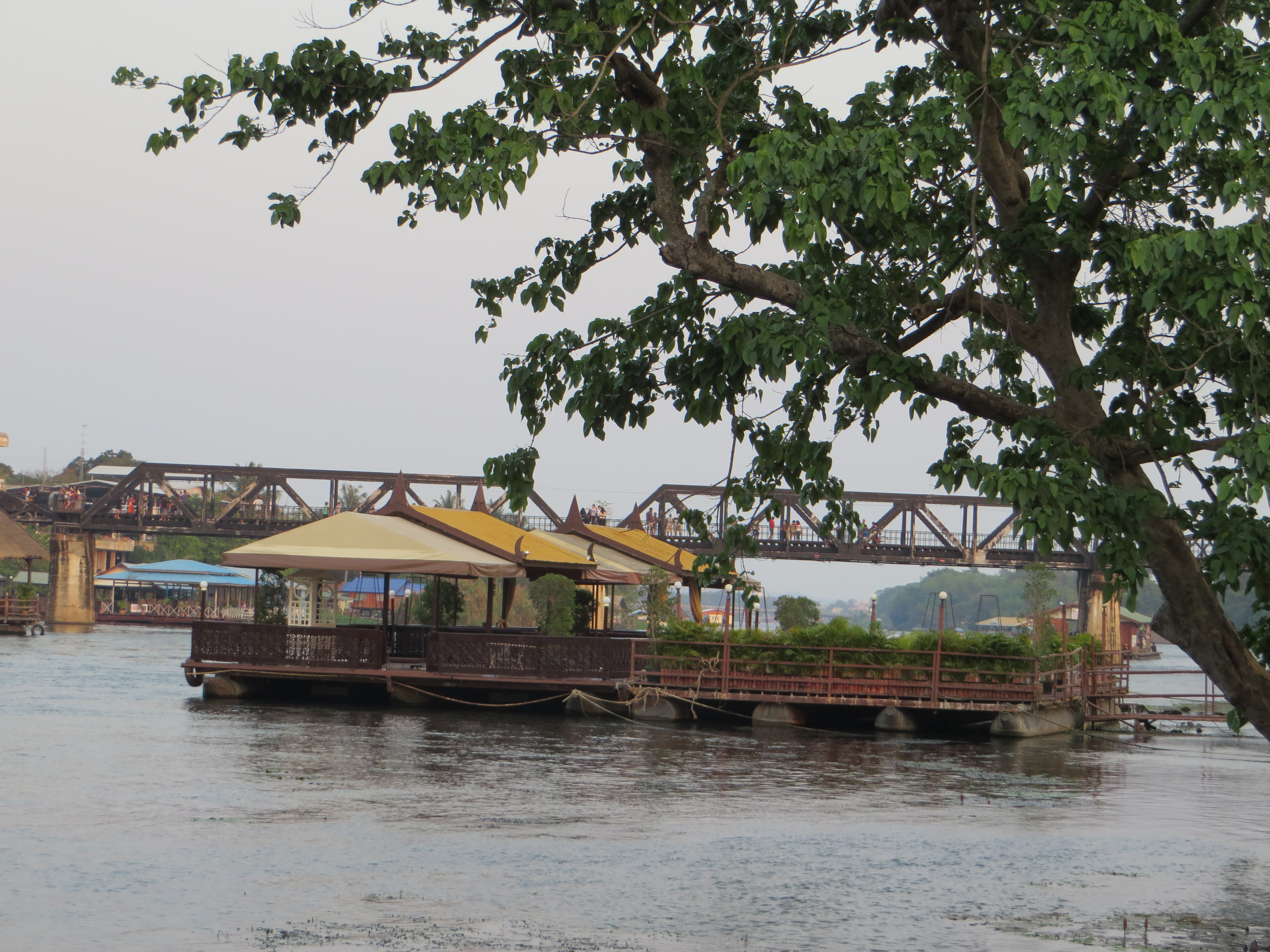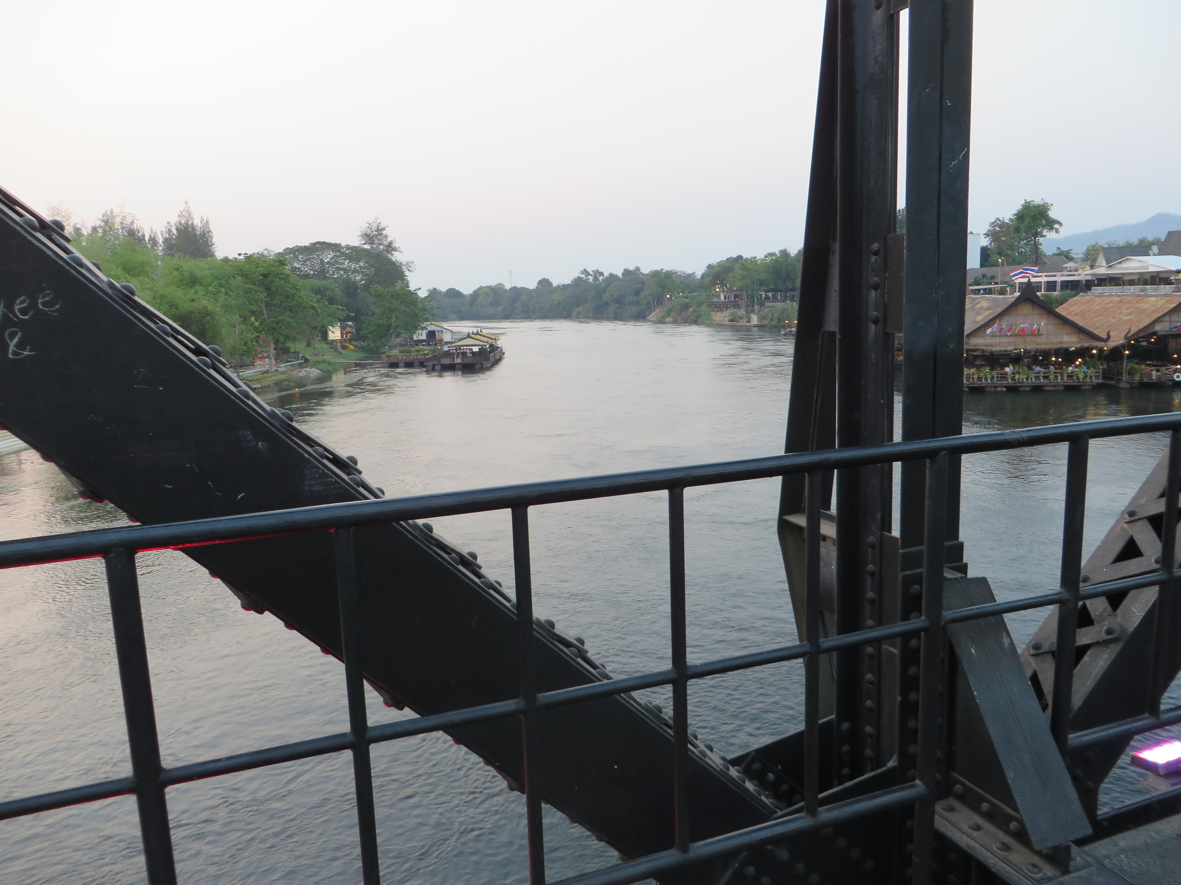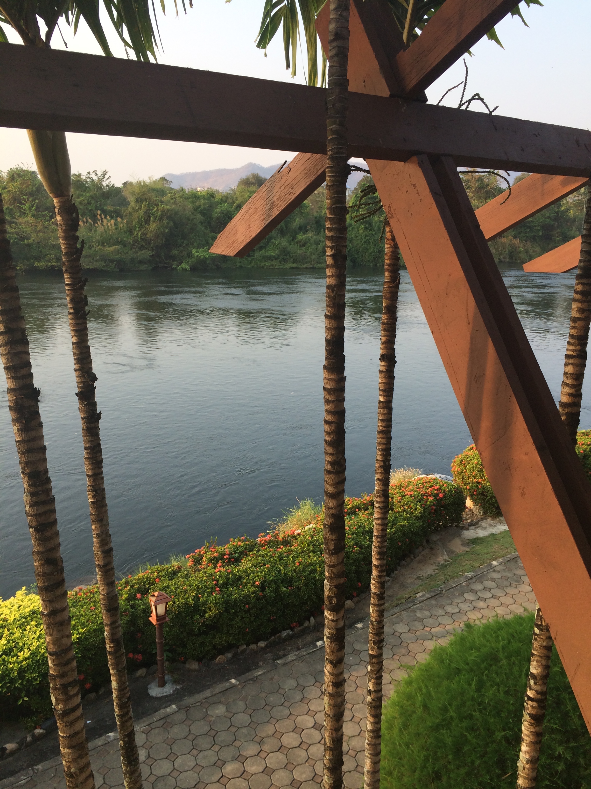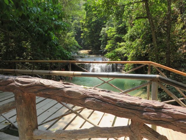 So after touring northern Thailand, I hopped on a plane and flew just over an hour down to Bangkok. From there, I was going to take the train northwest to Kanchanaburi, but the schedule just didn’t coincide well with my arrival in Bangkok so I chose to take a taxi for the 2 hour drive, which turned into 3.5, but I was happy just sitting in the back with the a/c and looking out the window. Kanchanaburi is like “the country” – think “upstate NY” – many people asked me why would I go there? Well, first off I needed to stretch my trip out a bit and go slow – Thailand is inexpensive and I was trying to save money, and I was also trying to push back getting to Italy (my next destination) until the spring season. Having spoken to some people who had been there, it sounded like a good place for a couple of days to enjoy nature before taking on the big city. If you’re thinking you’ve heard of Kanchanaburi, it’s probably because you studied it in your teens – it’s where the The Bridge On The River Kwai actually exists, and obviously the movie was filmed here too. That’s pretty cool, I thought, to touch a piece of history that I had studied and knew a bit about. The town is all about WWII, the bridge, the cemetery, the sights where the prisoners were kept and made to work in grueling conditions. Not very uplifting, but important nonetheless. My hotel was right on the River Kwai, and a 5 minute walk to the bridge. I have to say I was nervous walking across the bridge – I’m afraid of heights, and there are no guard rails so it’s really not safe, and if a train comes you’re just supposed to move over, so I’m told. Here’s some pics.