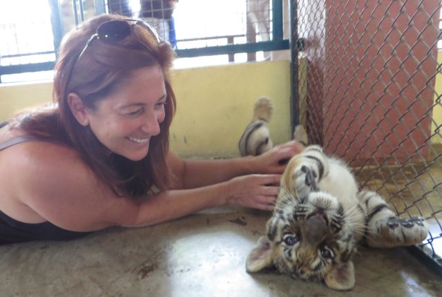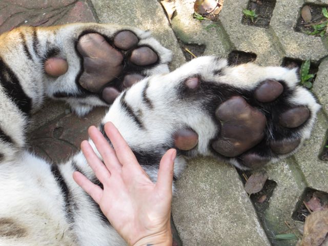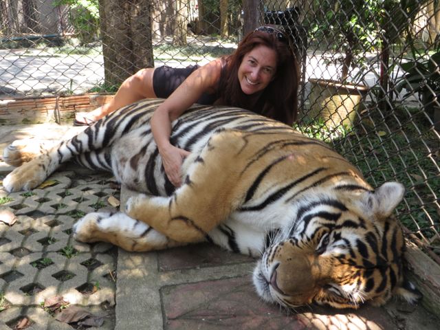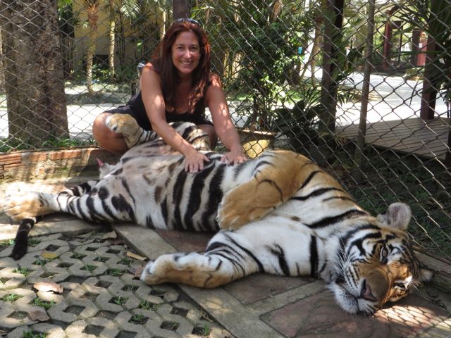 OK, so I know I said I wouldn’t go visit any zoos, and I didn’t, but I did visit Tiger Kingdom. I’m not proud of it, and I’m not sure what’s going on there with the animals, but I couldn’t get my questions answered satisfactorily either on the web or when I was there. The original tigers are said to be rescued, but they breed these tigers so now all of them have been born and raised in captivity. As a result, the people who work at Tiger Kingdom say, the tigers are used to being around people. They are obviously fed very well, and I did confirm on the internet (cause, you know, the internet doesn’t lie) that tigers sleep 18-20 hours a day which is how “they explain” why they’re mostly sleeping – “they say” they are NOT drugged. Jury’s still out on that one. They don’t allow the tigers to be near people once they turn 3 years old because they are unpredictable. Bottom line, I don’t really know how to say this other than literally – I laid down on a bunch of tigers and played with the cubs. Selfish, I know. But….ok, no buts.