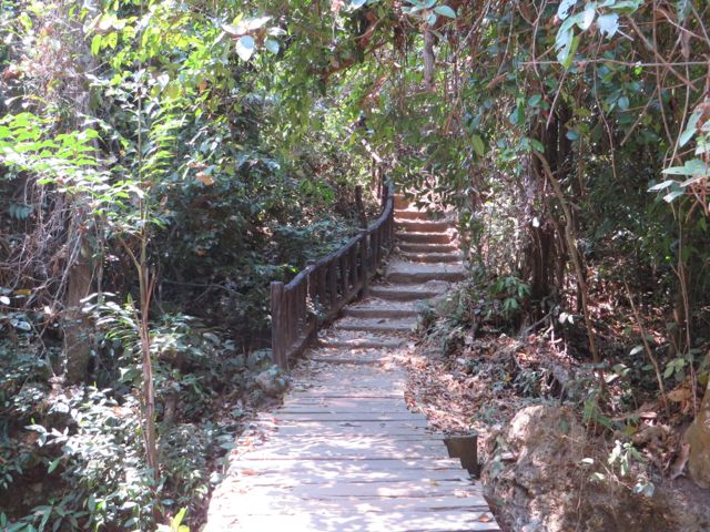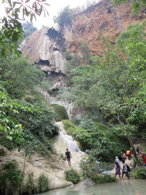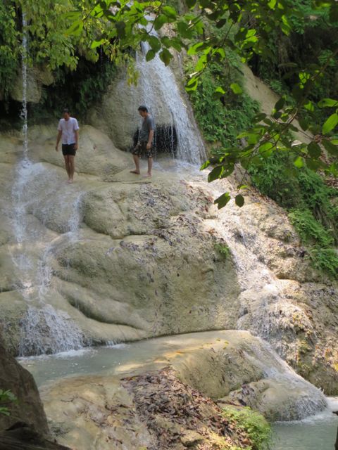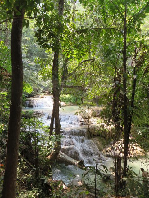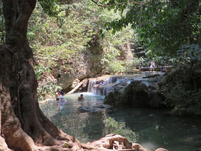 The other reason I waned to come to Kanchanaburi is because it has one of the prettiest waterfalls in Thailand for hiking – it’s called Erawan Falls. There are seven levels and it wasn’t always easy but I made it to the top, proudly! Interesting side note – I met a guy on my way up who is from Russia and his mother lives in the Ukraine. We had a really interesting conversation about Putin and how he sees the current situation. Obviously, all my info is from American sources so it was really eye-opening to hear his side of it. He wasn’t necessarily a Putin supporter in general, but he did support what Putin was doing, claiming that both the reigning gov’t in Crimea and the group that is taking over are BOTH fascists and corrupt, and Putin is protecting the Russians who make up most of the population of Crimea. Of course there are arguments on both sides of that, but I just liked conversing and hearing the point of view of a real insider. Because of the current situation, he had changed his plans and was leaving Kanchanaburi the following day to fly to the Ukraine to help his mother. A lot has happened since that conversation, and I do hope they are safe and well.