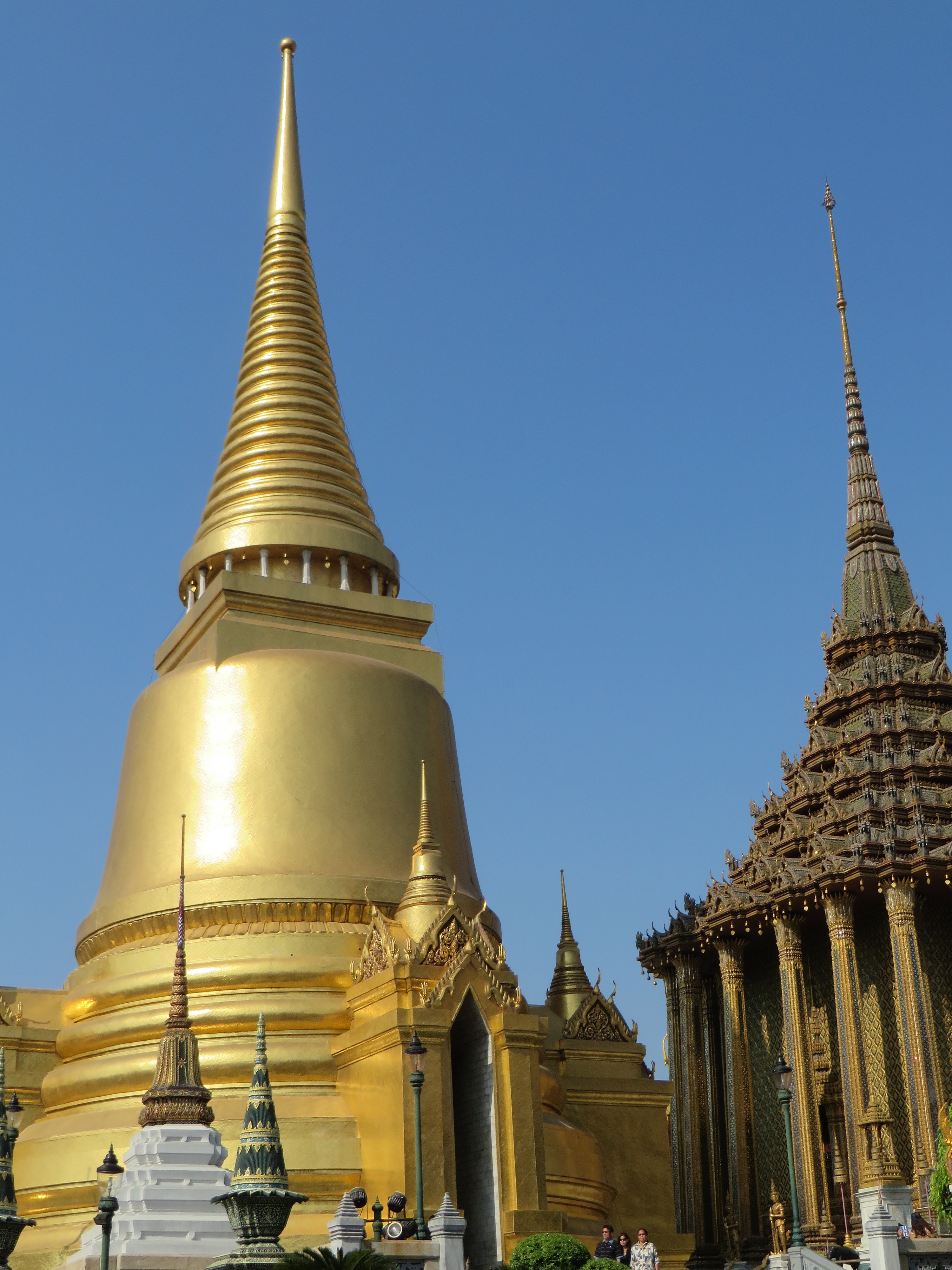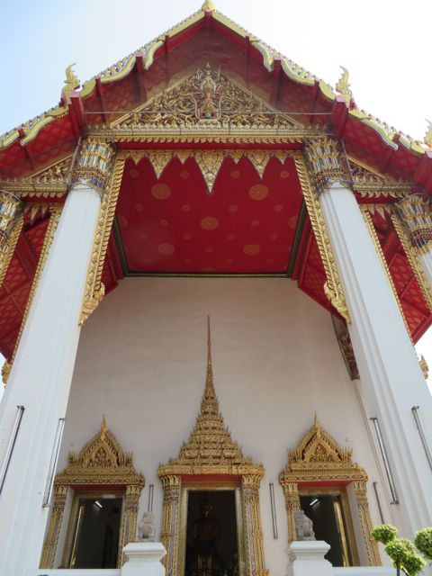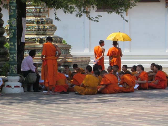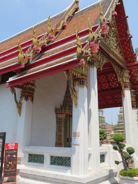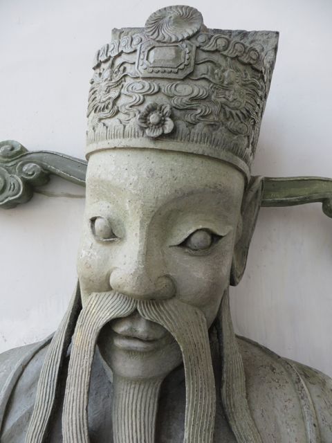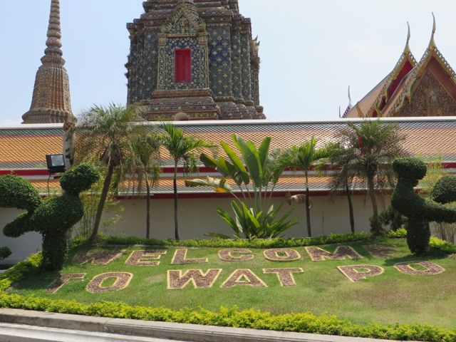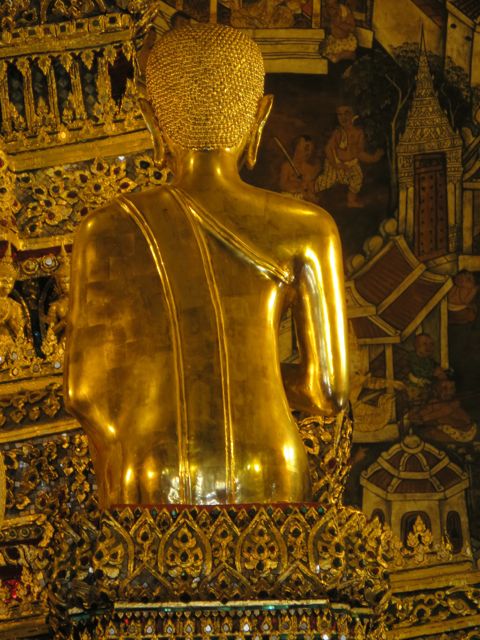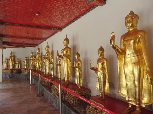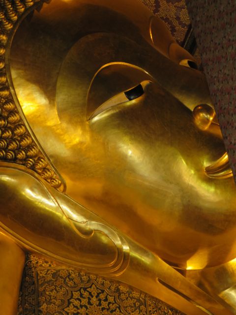 There are so many temples, of course, but the big highlight for me was Wat Pho. Oh – I did get scammed once here – not so bad though. There are guys who are taxi drivers who stand at some of these sights and “help” you get your bearings, show you where to go…but they will tell you that the sight you wanna see is closed until…well, if it’s 11:00 it’s closed till 2:30 so that he can take you around to see x,y, and z and then drop you back off here just in time for the opening. I had wanted to first go to the Grand Palace, and I was standing within earshot of an American family getting the schpiel being told it was closed until 2:30, although I did not know it was a schpiel at the time, and when I chimed in to inform them that I believed Wat Po was open and it was just next door, the cab driver nodded yes, and lost his “almost victims” because he thought I knew what I was talking about. I didn’t, but he confirmed it was open so we all walked over to Wat Pho. I waited till 2:30 to walk back over to the Grand Palace, and as I walked along the white wall, I listened to the speaker system loudly telling me and every other visitor, that the Palace is open everyday from 8 until 6, and if anyone tries to tell me otherwise, please do not believe them. I laughed. At least I didn’t lose any money.
